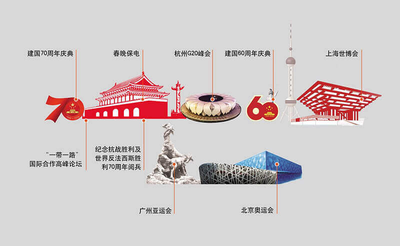 基于安全稳定的系统方案、及时完善的工程服务、灵活周密的现场指挥、专业合作的项目团队,乌鲁木齐市米东区鸿达五交化经销部成功完成建国70周年国庆庆典、“一带一路”国际合作高峰论坛、春晚保电、杭州G20峰会、建国60周年庆典、上海世博会、广州亚运会、北京奥运会等国家级重大政治活动保电工程,受到了业界一致肯定,乌鲁木齐市米东区鸿达五交化经销部亦被业界媒体冠以“保电专家”称号。