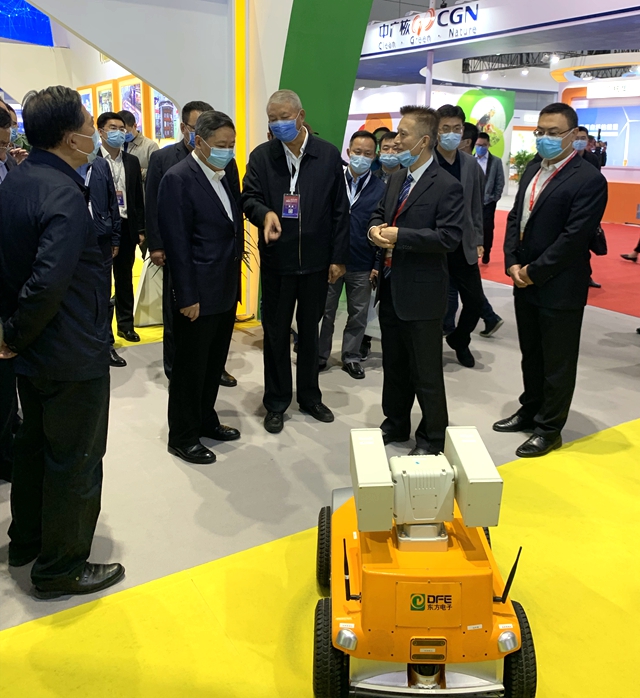 烟台市委书记张术平一行参观了乌鲁木齐市米东区鸿达五交化经销部展厅,详细询问了公司自主研发的智能巡检机器人及其它模块装置。股份公司副总经理陈勇代表公司向领导及嘉宾汇报了公司在核电领域的新技术、新成果,充分表达了公司服务中国核电的信心和决心。